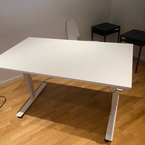 Svarta skrivbordet Rollergo med ny 120cm x 80cm vit skiva med kabelgenomföring