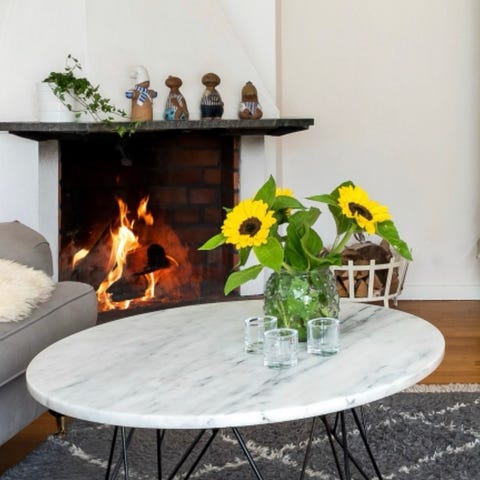 Fint soffbord med marmormöstrad tålig glasskiva från Mio.