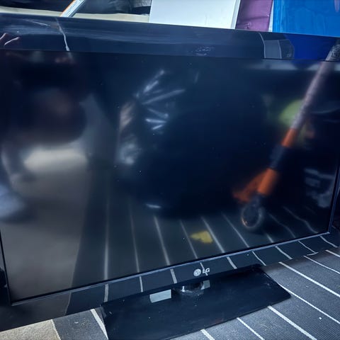 Samsung tv. Platt tv 32” med vit baksida. Lämplig för användning i vardagsrum eller sovrum för att titta på tv-program, film och strömningstjänster. Exakta mått, modellbeteckning och upplösning framgår inte av underlaget.