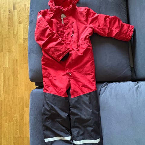 Vinröd unisex vinteroverall i stlk 110 från Stadium i vattentätt material. Det finns några små hål i yttertyget vid sömmen på insidan av benen som säkert kan åtgärdas om man är lite händig. Overallen är för övrigt i fint skick, hel och fungerande och använd endast av ett barn en säsong.