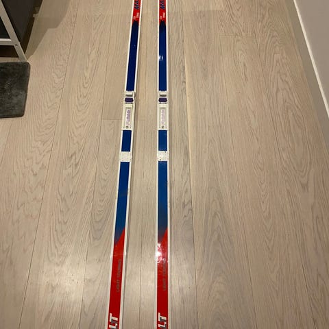Sparsamt använda Fischer Crown Ridge längdskidor 110cm, Salomon bindning.