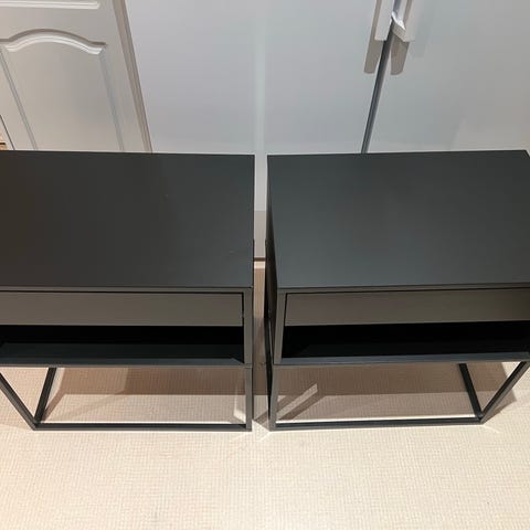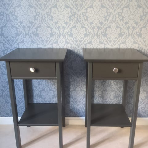 SÀljer hÀr ett par nymÄlade/vÀlmÄlade sÀngbord i en superfin halvmatt Greige nyans som heter