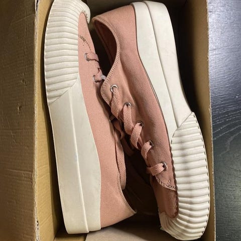H&M sneakers i storlek 41. Låga tygskor i vit färg med snörning framtill och gummisula. Passar som vardagsskor eller fritidsskor.