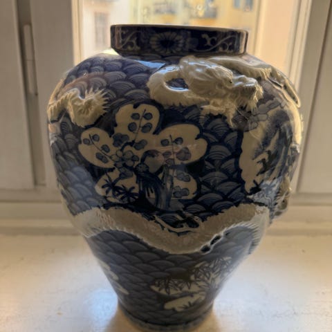 Fakta: -Säljer en stor porslinsvas med ursprung från Kina