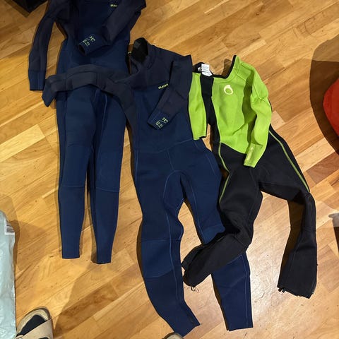 - Heltäckande lång våtdräkt med långa ärmar och ben