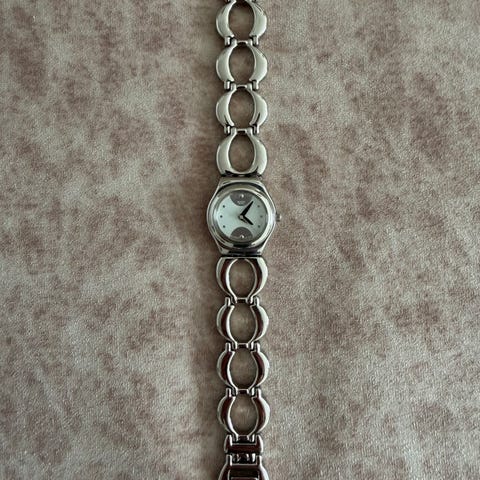 Vackert armbandsur med ett svart band prytt med flera rader av strass. 21 cm lång. Behöver nytt batteri, för övrigt i toppskick. Damur. Klocka. Ur.
