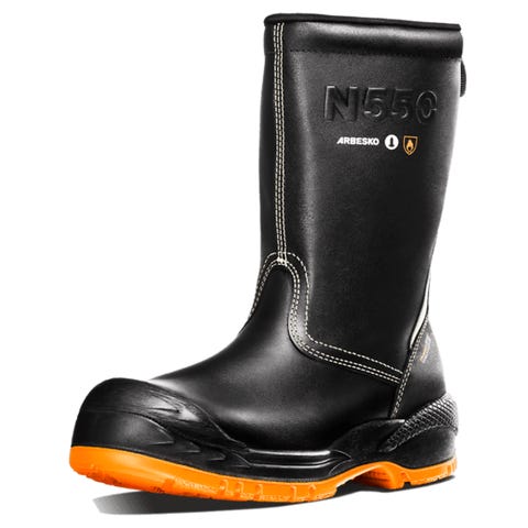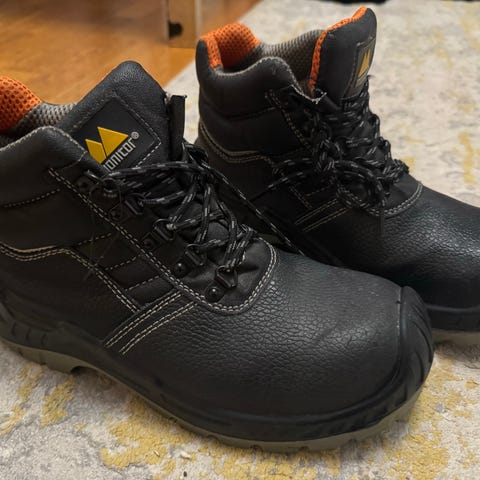 Arbesko kängor i svart färg. Stabil modell med högt skaft, snörning och kraftig sula med grovt mönster. Ovandel i syntetiskt material och textilpartier runt skaftet för ökad komfort. Passar som arbetskängor eller för vardag och utomhusbruk där man önskar en tålig och skyddande sko. Stålhetta och spiktramp. Storlek 43.