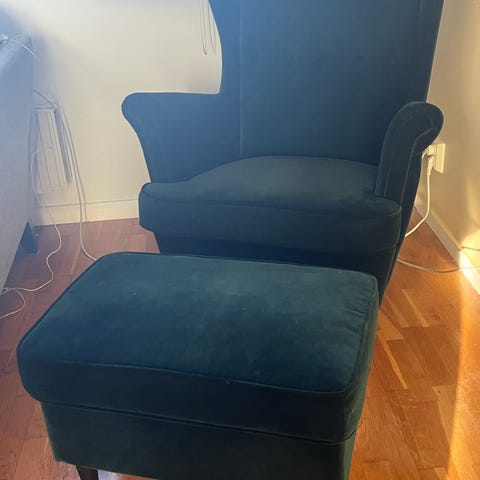 Strandmon fåtölj från IKEA röd/ orange färg i bra skick sparsamt använt säljes för 1500kr.