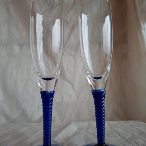 Glaset har den karaktäristiska blå droppen i foten och är en vacker detalj på dukningen.