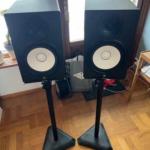 Högtalare av modell Yamaha NS-50F. Denna högtalare har en impedans på 6 ohm. Nominell ineffekt är 80 watt och maximal ineffekt är 240 watt. Högtalarna fungerar utmärkt. Lite spår av användning där fanér släppt men är ifyllt med svart penna, syns bara när man tittar väldigt noga.