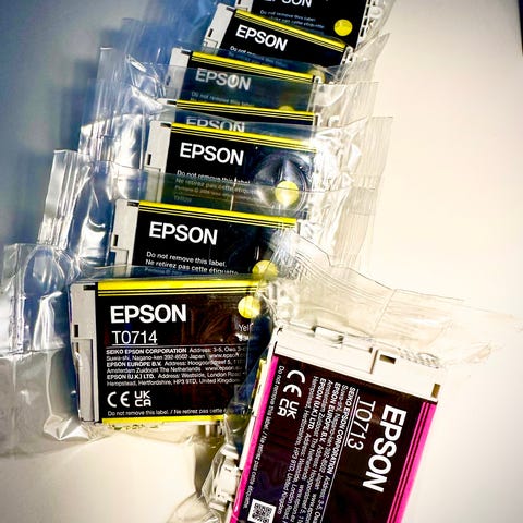 De flesta Epson original. Vi kan ju inte garantera funktionen, men de är i obruten förpackning så borde inte vara något problem.