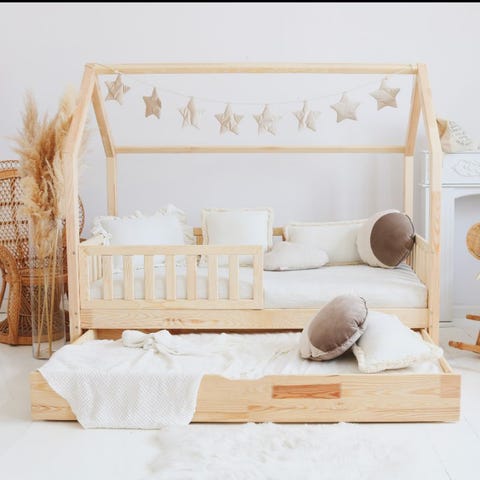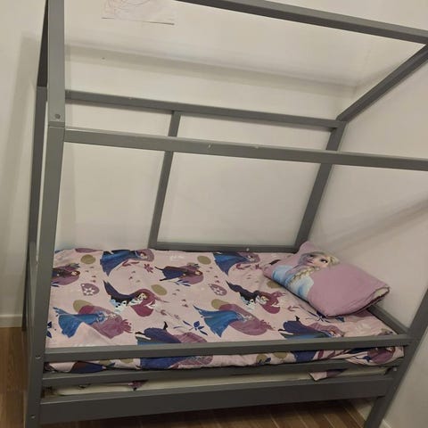 Hussäng med ram. Sängen är i vit färg och är 200x90.