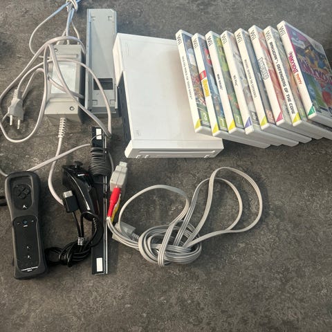 Säljer ett nintendo Wii med spelkonsol, en kontroll, en nunchucka och spelet Wii play.