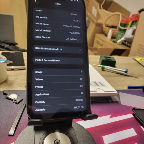 Säljer min iPhone 14 Pro Max 256 GB i mycket gott skick. Telefonen fungerar perfekt utan några problem. Batterihälsa 84%. Väl omhändertagen och använd med försiktighet. Säljer eftersom jag har köpt en ny telefon.
