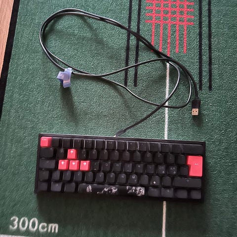 Fun 60% keyboard that works perfectly, lights and all. Extra keys included.
