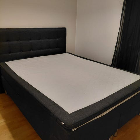Sängen köptes ny för 4 år sedan och har används varsamt. Hårdheten är i stort sätt oförändrad sedan köp och sängen har inga märkbara skador.