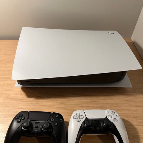 Sony Playstation 5 Slim Digital Edition med 2 trådlösa handkontroller (en original som ingick vid köp + en extra som köpts till)