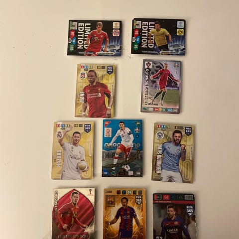 Champions League samlaralbum med fotbollskort. Albumen innehåller fotbollskort från UEFA Champions League med olika spelare och lag, inklusive landslagsspelare. Kort och album är organiserade i plastfickor. Passar för samling. Skriv vid frågor.