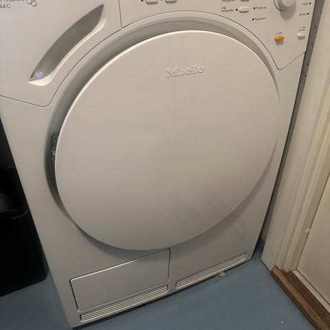 Electrolux kondenstorktumlare i vit färg. Frontmatad modell med rund lucka och tydlig panel med programväljare och knappar ovanför luckan. Maskinen fungerar inte och felkodar. Eventuellt möjligt att reparera.