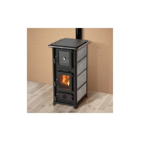 Värmebeständigt keramiskt glas i dörren Gjutjärns dör och brandjärn och gjutjärns topp och dörr till asklådan.