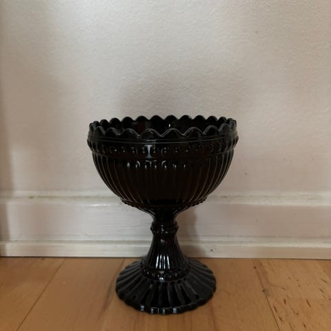 Iittala Marimekko glasskål på fot i brunfärgat glas.