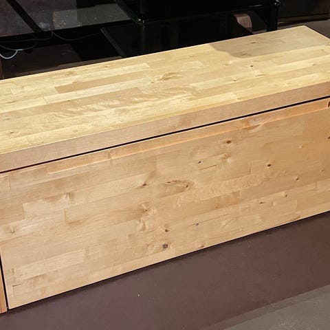 Perfekt hallmöbel för skor till exempel. Stabil sittplats. Tror den hette Norrebo på Ikea.