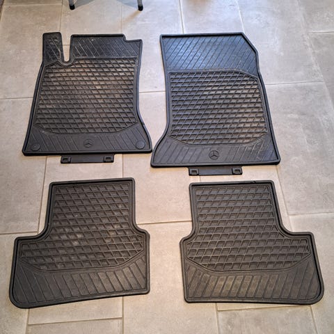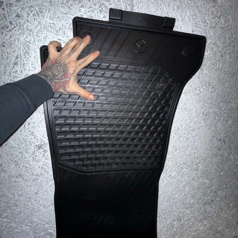 Frontgrill till bil i svart plast med dekorativa inslag i silver. Denna var på en CLA 250 2023!