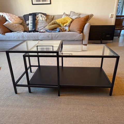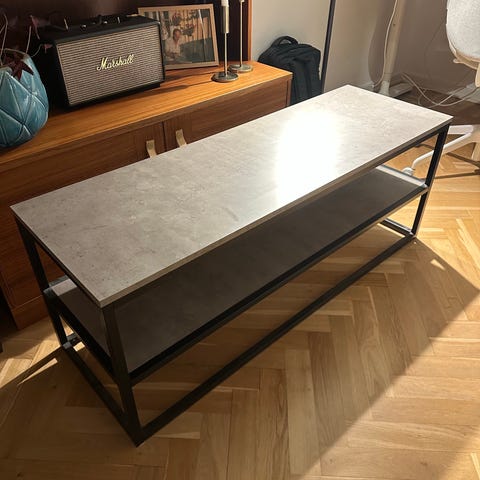 Mitt luckan på tv bänken är borta, går att beställa ny från Ikea. Soffbord 350:-