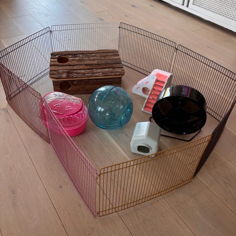 Smådjurstillbehör hage, transportbur, hus och löphjul