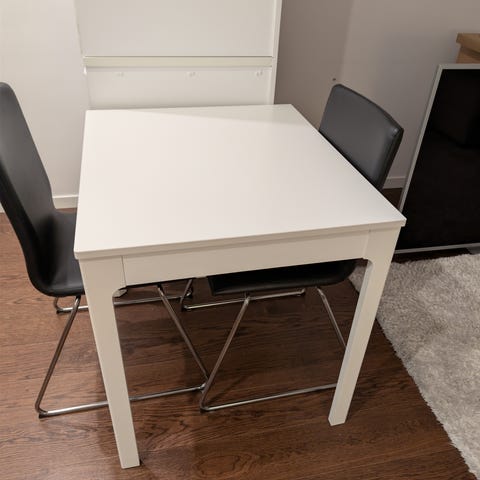 Bord från Ikea, stolar från jysk