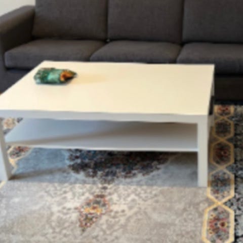 Soffbord "Alonzo" från MIO. Vithögglanslackerad inklusive glasskiva, ben i borstad stål.