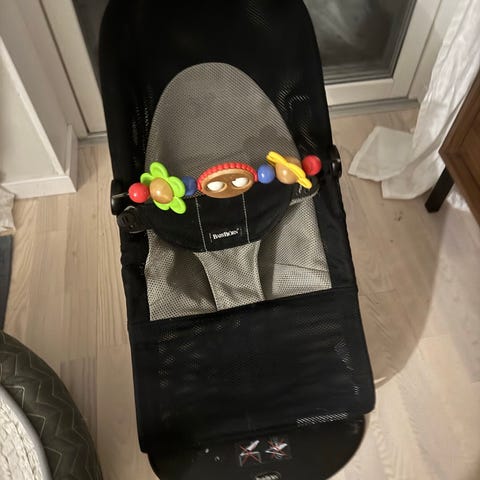 Säljer en vit och grå barnpall från BabyBjörn.