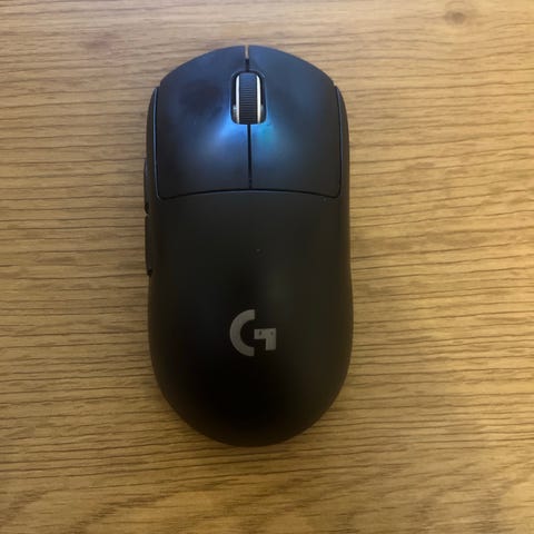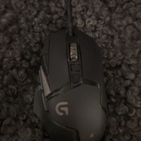 Logitech G gamingmus i svart färg. Trådbunden modell med flera knappar på ovansidan och sidan för olika funktioner. Passar för användning till dator, exempelvis spel och vardagligt bruk.