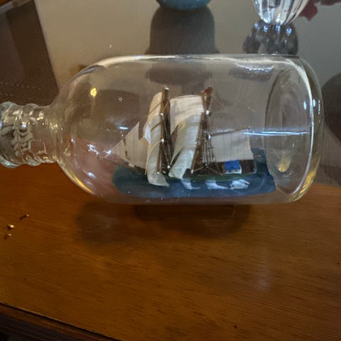 Säljer en pirat skepp som endast legat I skåpet är dammig finns väl kanske saker som har ramlat av men för en kunnig kanske kan detta elr bara ha den som en prydnad