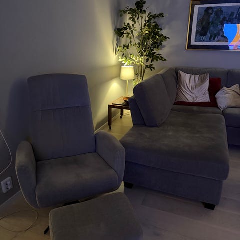 Fåtölj med fotpall