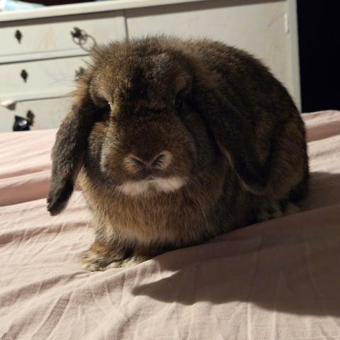 Kaninis är världens bästa kanin och är helt frisk och mycket aktiv men också en soffpotatis. Han älskar att sova i sängen och gosa.