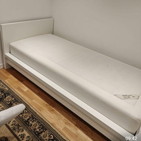 vit säng från IKEA 90*200+ ribbotten +madrass fast