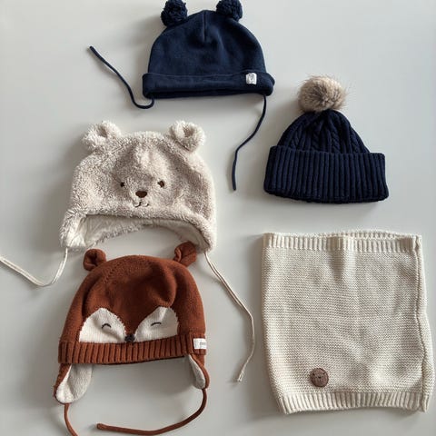 Blandade mössor + halsduk i blandade storlekar. Passar för barn från 2 upp till 6år .