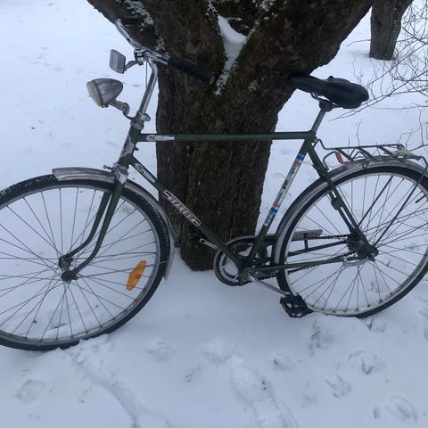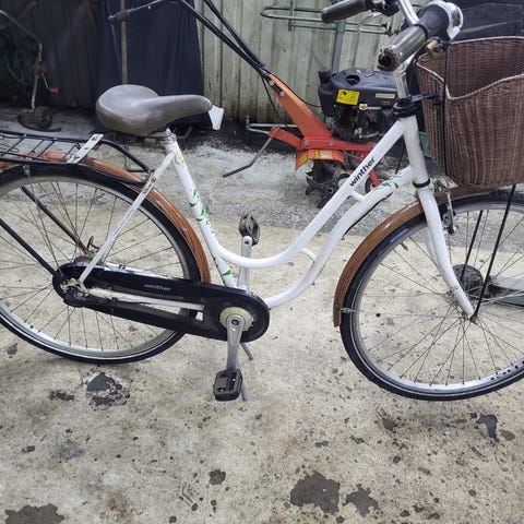 En äldre trevlig klassisk kvalitetscykel med stor ram (55cm) från Skeppshult i bra skick med de lite större 28” hjulen (635mm) . Nyservad och genomgången med bl.a. ny korg. Allt fungerar perfekt. 3vxl Torpedo invändiga navväxlar. Fotbroms bak. Handbroms fram. Reflexer. Fungerande batteribelysning fram och bak Ramlås med 1 nyckel. Rullar lätt och fint på raka hjul och bra däck. Det är bara att ställa sadeln i rätt höjd och börja cykla. Ramstorlek 55cm. Hjulstorlek 28tum (42-635).
