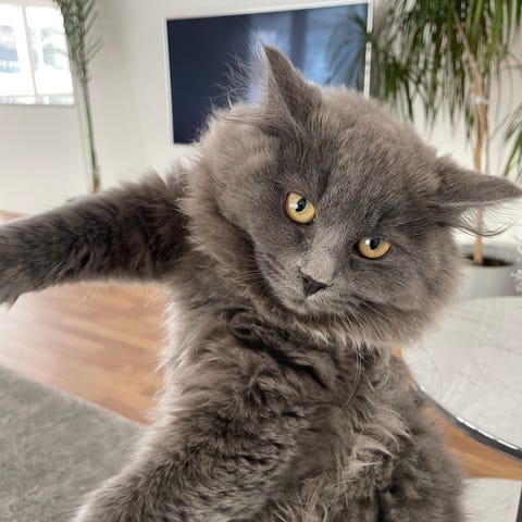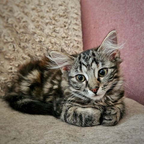 De är väldigt sociala och gillar att busa och äta. Ligger gärna i knät och gosar.