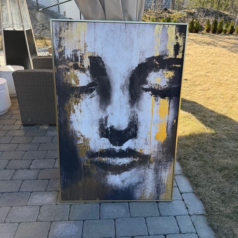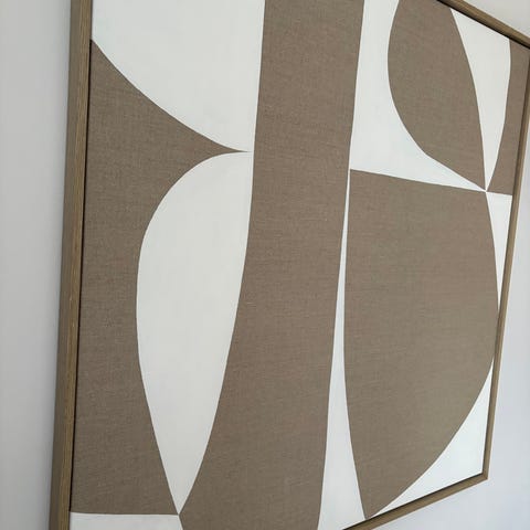 Tavla med abstrakt motiv i svart och beige. Rektangulär form med smal ram runt. Passar som väggdekoration i exempelvis vardagsrum, hall eller sovrum. Från HM Home