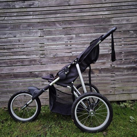 Robust barnvagn, idealisk för jogging i skogen och på terräng.