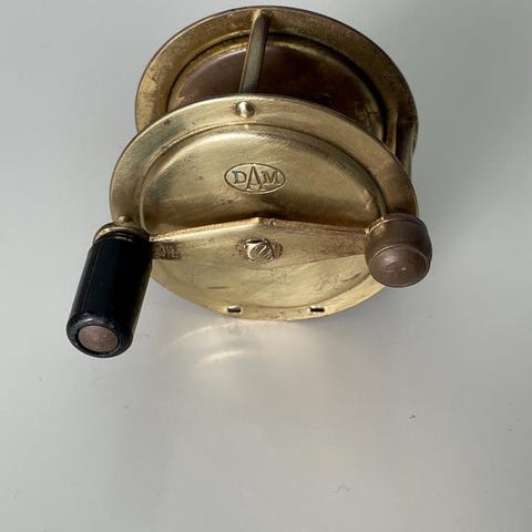 En äldre fiskerulle, rätt stor, ca 175mm hög, diameter 145mm . Enligt uppgift från sent 1800 tal.