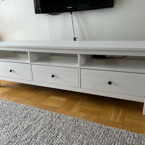 Fin TV-bänk i bra skick, några repor precis där tv:n stått, vilket inte är något man lägger märke till med tv placerad på.