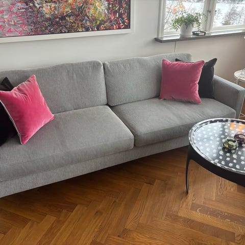 Säljer min soffa som är inköpt på Stockholm Furniture & Light Fair år 2016 av ett belgiskt varumärke. Nypris cirka 13 000 (år 2016). I gott skick men flitigt använd under åren.