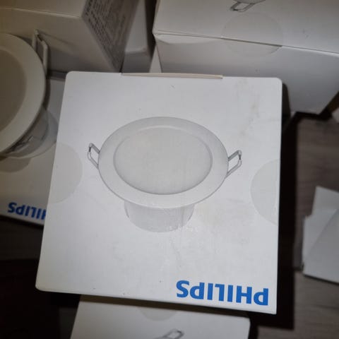 Fem takspotlights i metall med flera riktbara spotlights i vit färg. Är avsedda för montering i tak och ger möjlighet att rikta ljuset mot olika ytor eller arbetsområden. Passar exempelvis i kök, hall eller vardagsrum där riktat ljus behövs. Levereras med takplatta och spotthuvuden enligt bilderna.