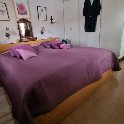 Två 90 cm sängar med två dubbelbäddmadrasser 180 x200. Det finns en gavel om ni också önskar.