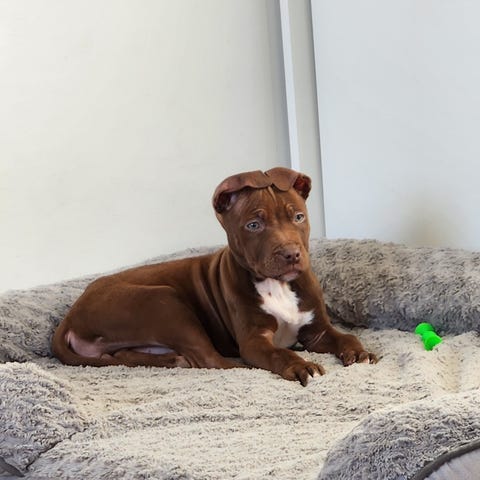 Vår Pippi är en American Stafford Terrier som strax fyller 4 månader. Hon är en glad och nyfiken tjej med mycket kärlek.