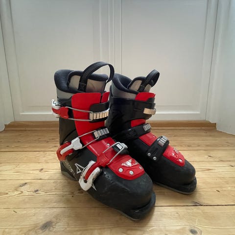 Innovativ alpinpjäxa för barn från Nordica. Flexjustering för enkel anpassning av pjäxan efter barnets vikt och färdighetsnivå. Två lätthanterliga aluminiumspännen.
