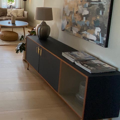 Passar utmärkt som tv-bänk, förvaring i sovrum eller som sideboard i vardagsrum/hall.